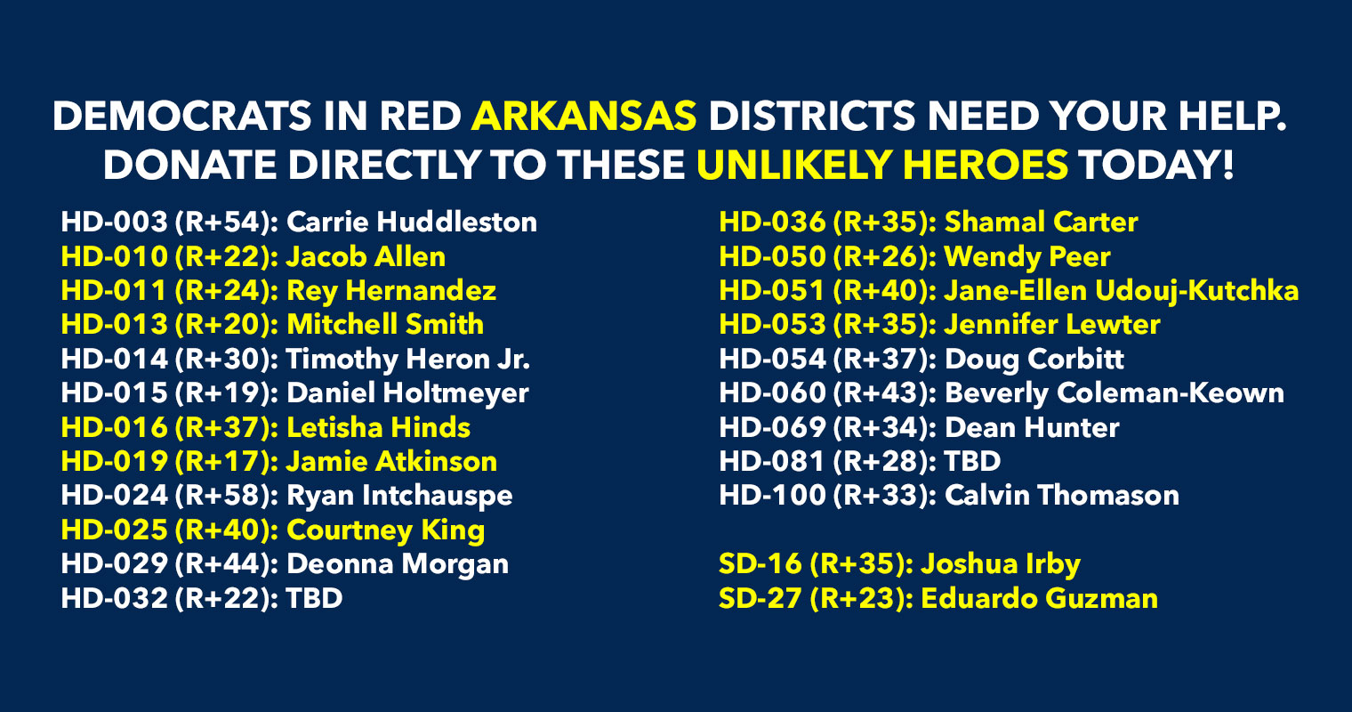 Donate to Democrats running in deep red districts to boost turnout & force Republicans to defend their turf!
